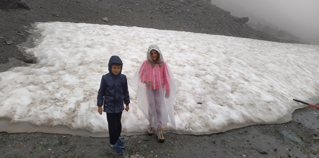 Но там все-таки решили, что особенно у малыша одежда таки не подходит к погоде и поехали вниз.